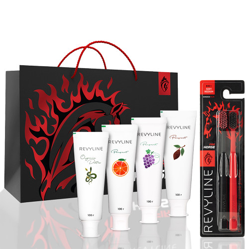 Зубные щетки, подарочные пакет, коробка и открытка выпущены лимитированной серией специально к 2026 году – году Огненной Лошади.